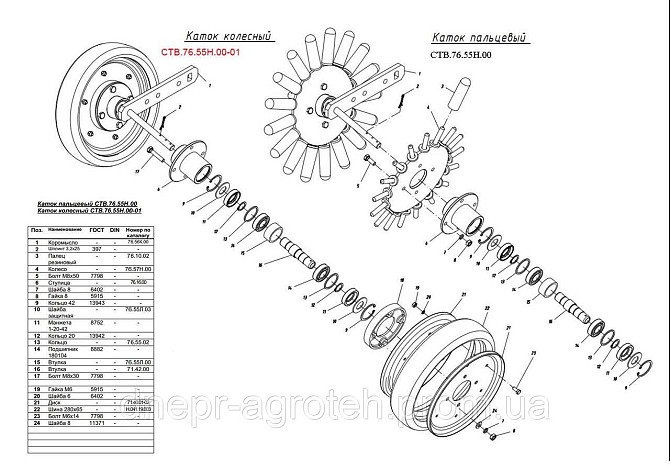 Вал боковой секции борони БГР-4.2.20.20.00.01 (1260 мм) с гайками
