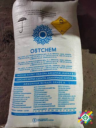 - **Аміачна селітра (Черкасиазот, біг-бег 1 тонна)** Ціна: 20400 грн/тонна при покупці від 1 тонни, 19900 грн/тонна при покупці від 5 тонн. Аміачна селітра є азотно-фосфорним добривом, що містить у своєму складі аміачний азот та сірку. Це добриво сприяє підвищенню врожайності рослин та покращенн...