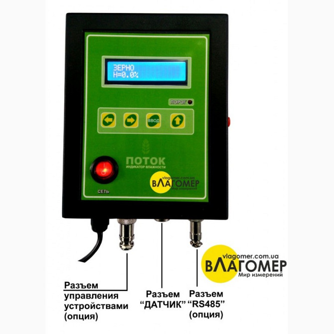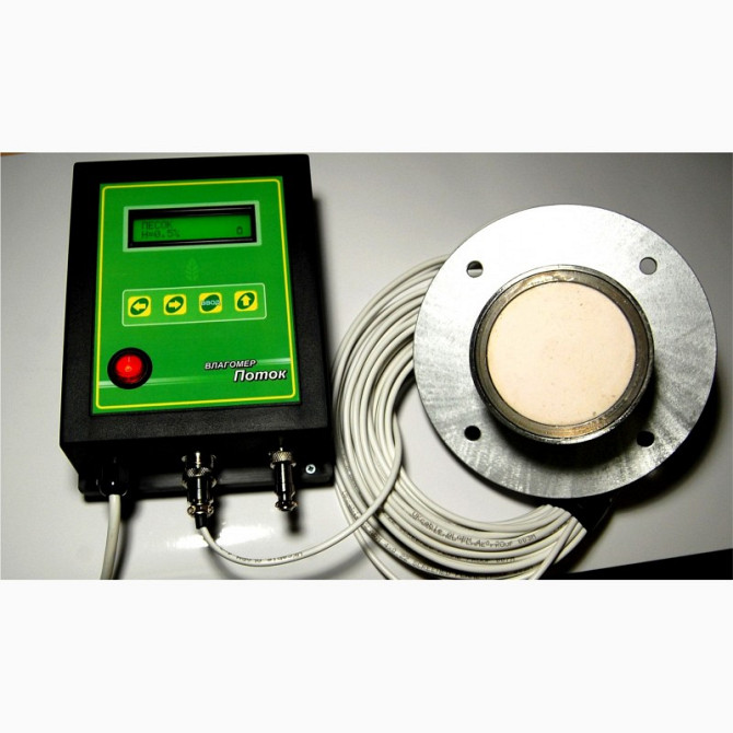 Вимірювач вологості - вологомір "Потік" призначений для вимірювання вологості зерна, насіння, дрібних часток та інших гранульованих та порошкоподібних продуктів і матеріалів у бункері, сушарці, шнеку, на конвеєрі. Метод вимірювання ґрунтується на ефекті поглинання електромагнітної енергії високої ча...