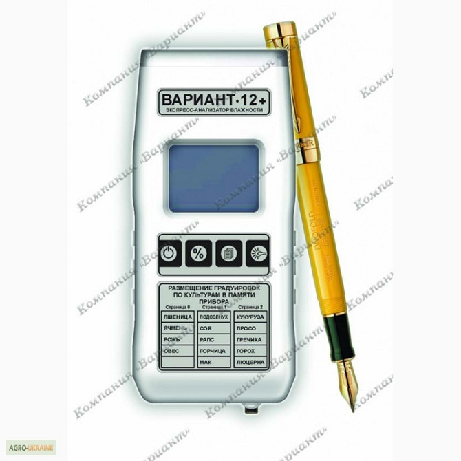 ЕКСПРЕС-ІНДИКАТОР «ВАРІАНТ - 12+» «Варіант-12+» — портативний багатодіапазонний пристрій для експрес-визначення вологості зернових, олійних та інших сільськогосподарських культур. Прилад має розширений сервіс та може бути калібрований для 30 культур. Організація пам'яті на сторінці дозволяє користу...