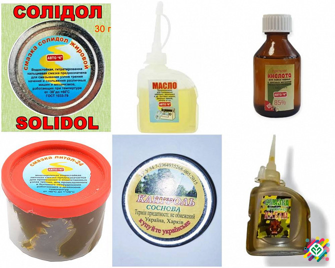 ### Технічні специфікації та Опис Продукції У продажу доступні наступні види масел та змазок: - **Масло машинне фасоване і-20:** - Об'єм: 20мл / 30мл / 80мл - Ціна: від 8,50 грн за одиницю в ящику - **Масло вазелинове:** - Об'єм: 30мл - Ціна: від 14,50 грн за одиницю в ящику - **Ма...