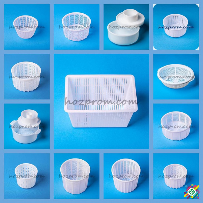 Великий вибір форм для сиру: для сиру і віджимання сироватки, для м'яких сирів "Італійський кошик", для твердого сиру в комплекті з поршнем, для бринзи (зі зливом сироватки) та інші. Форма для сиру і віджимання сироватки забезпечує вихід продукції вагою 1,5-2,5 кг. Форма для м'яких сирів "Італійськи...