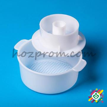 Якісні товари для сироварів! Агрономічний опис продукції: Форма для виготовлення творогу ефективно відводить рідину з сирної маси, дозволяючи отримати продукцію вагою від 1,5 до 2,5 кг. Навіть дуже ніжний сирок під впливом власної ваги не провалюється в отвори форми. Виготовлена з харчового поліпро...