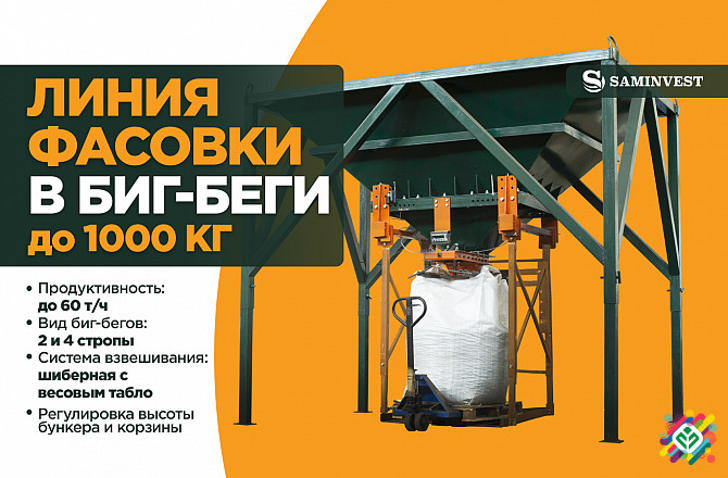 Обладнання для фасування в мішки біг-беги до 1000 кг призначене для автоматизованого процесу вагового дозування та упаковки продуктів у великі мішки. Ця система має оригінальний механізм захоплення, обладнаний вузлом зважування та дозування, що дозволяє ефективно завантажувати біг-беги різних розмір...