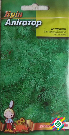 Мінімальне замовлення від 10 штук. Новий сорт укропу "Алігатор" відрізняється привабливим зовнішнім виглядом: листя зелені з легким сірим відтінком, соковиті та ароматні. Розетка рослини піднята, що полегшує догляд під час вирощування та запобігає забрудненню листя після дощів. Від сходів до техніч...