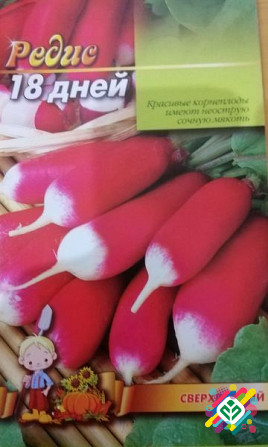 Мінімальна кількість для замовлення – 10 штук. Ультраранній сорт редису відзначається високою урожайністю, що дозволяє отримати декілька врожаїв протягом одного сезону. Плоди мають циліндричну форму з щільним і соковитим м'якоттю середньо-гострого смаку. Рослина відповідає на низькі температури, по...
