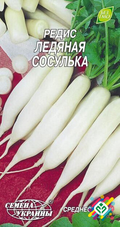 Мінімальне замовлення: 10 одиниць. Редис сорту "Ледяна стрічка" є середньостиглим сортом. Вегетаційний період від сходів до технічної спелості триває 35-40 днів. Коренеплід має біле забарвлення, удовгувато-конусоподібну форму, завдовжки 5-7 см, вагою 45-60 грам, без гіркоти. М'якоть біла, скляниста...