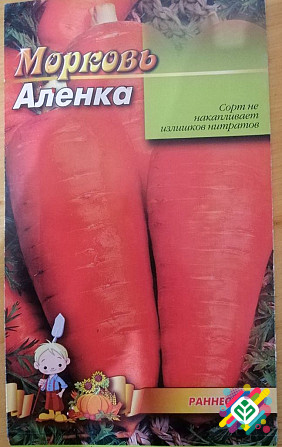 Мінімальне замовлення - 10 штук. Сорт моркви середньоранній. Вегетаційний період від сходів до технічної стиглості становить 140-150 днів. Коренеплід має слабо конусоподібну форму з тупим кінчиком, червоно-помаранчевого кольору, завдовжки 15-17 см та вагою 120-180 грам. М'якоть має однорідний помар...