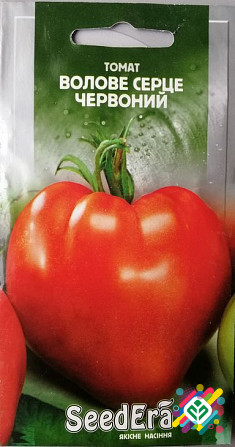 Бикове серце - середньостиглий та урожайний сорт великоплідних сердцевидних томатів. Мінімальна кількість для замовлення - 10 штук. Строк дозрівання - 115-120 днів. Рослина має міцний стебло, висотою до 120 см. Плоди вагою від 500 до 800 г, червоно-малинового кольору, м'ясисті, соковиті, дуже смачні...