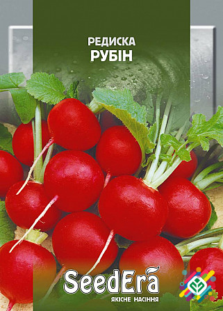 Мінімальна кількість для покупки — 10 штук. Сорт раннього врожаю. Коренеплоди цього сорту мають круглу форму, рубіново-червоний колір, діаметр 3-4 см та вагу 15-20 г. М'якоть коренеплодів біла або біло-рожева, щільна, з невиразним гострим смаком, соковита та ніжна. Сорт відносно стійкий до хвороб т...