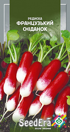 Мінімальне замовлення - 10 штук. Ранній сорт овочів. Коренеплоди цього сорту мають циліндричну форму, яскраво-червоні з білим кінчиком, довжиною 6-8 см та масою 25-30 г. М'якоть цього сорту соковита, дещо гостра, ніжна та гостро-пряна. Сорт відомий своїми чудовими смаковими якостями, стійкість до ц...