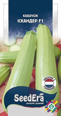 Мінімальне замовлення - 10 штук. Підходить для відкритого і закритого ґрунту. Строки дозрівання: ранні. Від моменту посіву до технічної зрілості - 38-42 дні. Рослини кущового типу, бічні пагони короткі. Плоди мають витягнуто-циліндричну форму, з ребристістю на основі, середня вага 300-500 грамів. Мо...