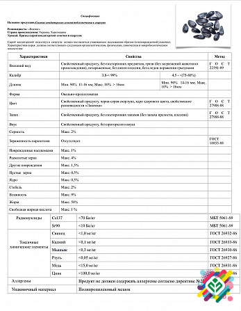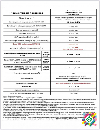Технічний опис кондитерської семечки від брендів "Добрыня", "Викинг", "Лакомка" та "Донський": Продукт: Семечка кондитерська колібрована Бренд: Добрыня, Викинг, Лакомка, Донський Ціна: Ціна обговорюється Кількість: 100т+ Калібр: 38+ Вміст жирів: 75% Кислотність: до 0,6 Контактна особа: Олександр Те...