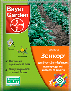 **Гербіцид широкого спектру дії для боротьби з двосім'ядольними та деякими злаковими бур'янами при вирощуванні картоплі та томатів.** **Діюча речовина:** метрибузин 700 г/л. Метрибузин є селективним системним гербіцидом. Діюча речовина легко абсорбується корінням та проростками рослин, але може пр...
