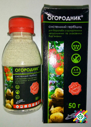 Препарат "Огородник" можна застосовувати до та після всходів культур та бур'янів. Активна речовина: метрибузін 700 г/кг. Форма препарату: водорозчинні гранули. "Огородник" - системний гербіцид селективної дії, листовий, для застосування до та після всходів. Має широкий спектр дії проти двосім'яних т...