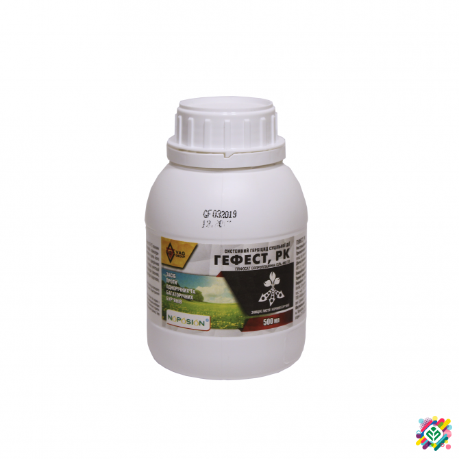 Препарат "Гефест" є системним та неселективним гербіцидом, призначеним для боротьби з різними видами бур'янів на ділянках, призначених для вирощування сільськогосподарських культур. Склад діючої речовини: гліфосат ізопропиламінової солі у концентрації 480 г/л. Для приготування розчину гербіциду "Г...
