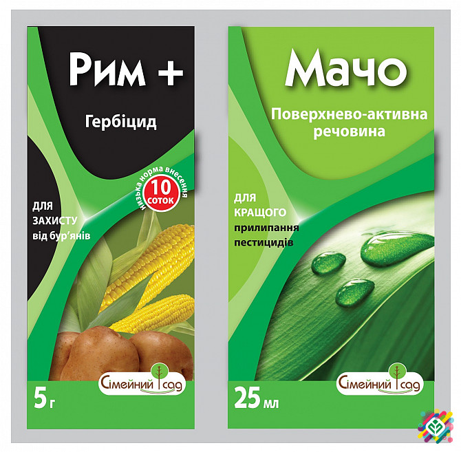 «Рим» (водорозчинні гранули) - посівний гербіцид системної дії для боротьби з однорічними і багаторічними злаковими та двокотилковими бур'янами в посадках картоплі, посівах кукурудзи на зерно, силосі, зеленому кормі. «Мачо» (розчинний концентрат) - поверхнево-активна речовина, яка додається як агент...