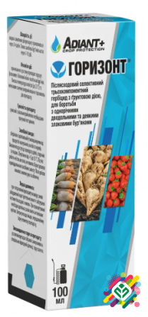 **Гербіцид "Горизонт"** "Горизонт" - це післясходовий селективний трьохкомпонентний гербіцид з дією на ґрунт, призначений для боротьби з однорічними двосім'янками та деякими злаковими бур'янами. **Властивості та переваги:** - Має широкий спектр дії проти однорічних двосім'янкових бур'янів та деяки...