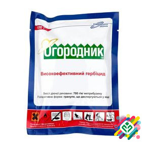 На 7-15 сотках висіву (посадки) Опис: Гербіцид системної дії для боротьби з широколистими та деякими злаковими бур'янами на помідорах та картоплі. Механізм дії: Гербіцид системної дії, що поглинається листям та кореневою системою, інгібуючи фотосинтез. Властивості та переваги: Широкий спектр дії п...