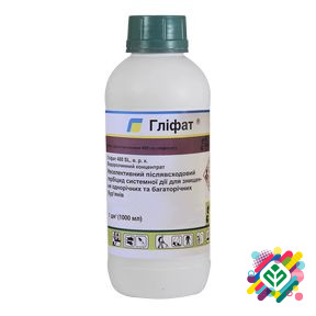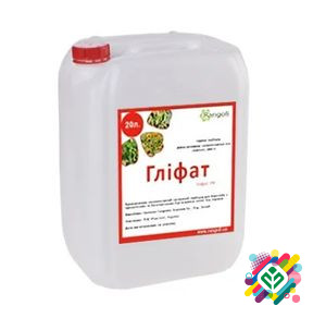 Опис Почвений гербіцид Гліфат є засобом широкого спектру дії, діюча речовина - ізопропіламінова сіль гліфосфату 480 г/л. Тип контрольованих бур'янів - двосім'ядольні, злакові. Норма робочого розчину 200-400 л/га. Норма витрати 2,0-4,0 л/га. Призначення: обробка борони, землі несільськогосподарського...