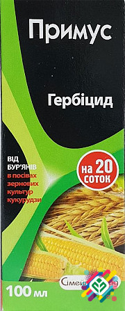 Мінімальна сума замовлення 350 грн. Упаковка 100 мл, 500 мл. Примус, 100 мл - послясходовий гербіцид для захисту посівів зернових колосових культур та кукурудзи від широкого спектру дводольних бур'янів. Діюча речовина: 2-етилгексиловий ефір, 2,4-Д — 452 г/л + флорасулам — 6,3 г/л. Лікарська форма: с...