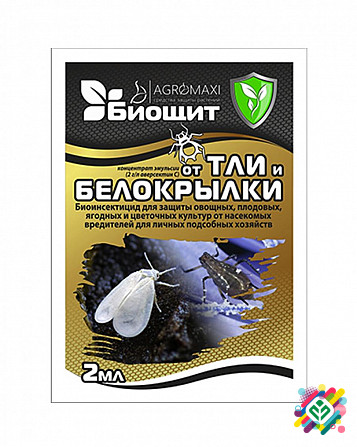 **Біощит від тлі та білокрилки 2 мл (інсектицид та акарицид)** Біоінсектицид для захисту овочевих, плодових, ягідних та квіткових культур від комах шкідників для особистих підсобних господарств. **Характеристики:** - Препаративна форма: концентрат емульсії. - Діюча речовина: 2 г/л аверсектину С. -...