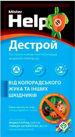 **Інсектицид системно-контактної дії для широкого спектру застосувань** Інсектицид широкого спектра дії, який усуває колорадського жука та інших шкідників. **Діючі речовини:** імідаклоприд 250 г/л, лямбда-цигалотрин 80 г/л. **Переваги:** - Швидко діючий препарат. - Має відлякуючу та захисну дію н...