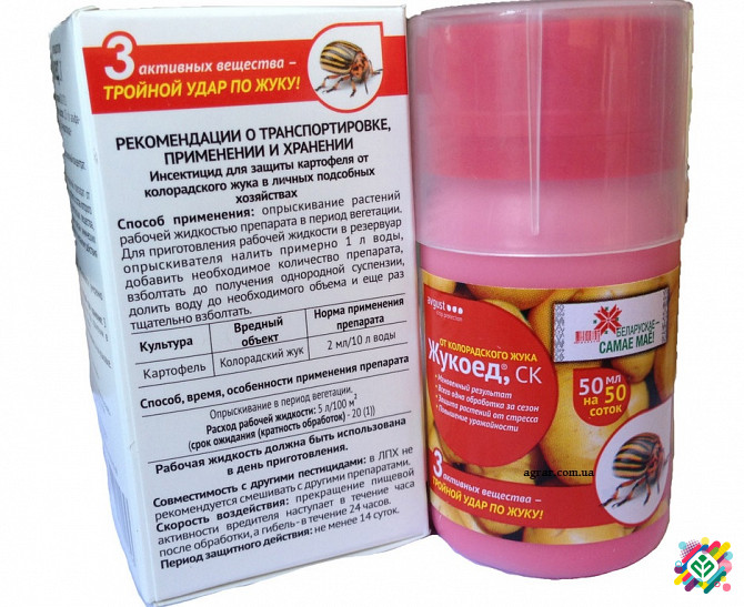 Мінімальна сума замовлення – 300 грн. Троякій удар по жуку. Інноваційний препарат від колорадського жука на картоплі, що містить три активних речовини, належать до різних класів хімічних сполук, відрізняються за механізмом дії та фізичними властивостями: - Альфа-циперметрин – контактна дія, концентр...