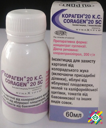 Мінімальна сума замовлення - 300 грн. Препарат нового покоління для захисту картоплі від колорадського жука, яблунь від яблучної плодожорки, молей, щитівки, томатів від молії. Після застосування препарату личинки та дорослі комахи втрачають здатність до живлення та не завдають шкоди рослині. Кораге...