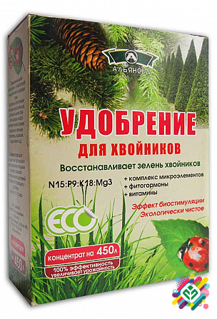 Забезпечує повноцінне живлення хвойників та може бути використаний в будь-якій системі поливу (кореневе підживлення, крапельний зрошування, дощування, гідропоніка тощо). Це ідеальне добриво, яке надає найкращий результат: - сприяє швидкому, здоровому та гармонійному розвитку рослин; - збільшує кільк...