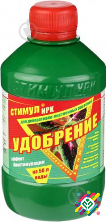 Жидке комплексне добриво СТИМУЛ NPK містить макро- та мікроелементи в легкоасимільованих формах, гумати та комплекс біологічно активних речовин, що збільшує стійкість до хвороб і неблагоприятних умов утримання. Склад макроелементів (г/л): азот (N) - 15, фосфор (P2O5) - 10, калій (K2O) - 10. Мікрое...