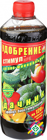 Органомінеральне добриво Дачник Стимул містить природний гумус (продукт життєдіяльності черв'яка каліфорнійського) та необхідні для садових рослин мінеральні компоненти. Збалансований склад сприяє підвищенню родючості ґрунту та стійкості дерев та кущів до хвороб. Тип: Органічне, мінеральне. Класифік...