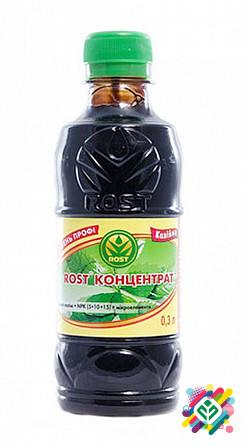 **Призначення:** Удобрення "Рост-концентрат" містить всі необхідні елементи живлення рослин, має стимулюючу дію і підвищує стійкість рослин до грибкових та бактеріальних захворювань. Завдяки високому вмісту активних речовин удобрення може використовуватися як для кореневого, так і для листового під...