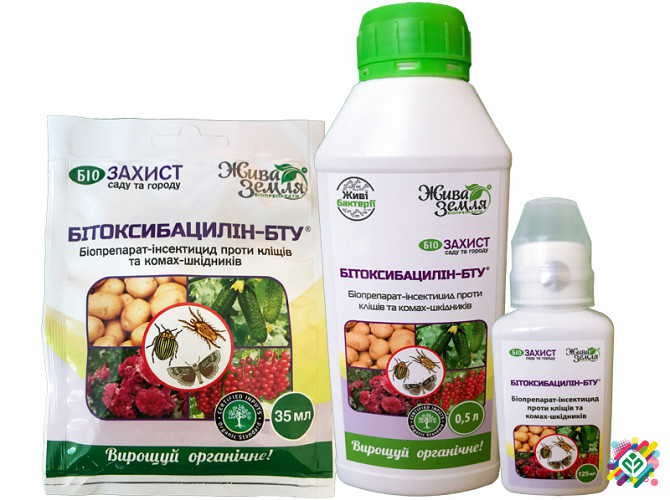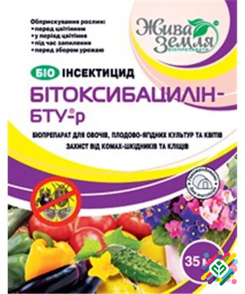 Призначення препарату Біотоксибациллін-БТУ: • препарат Бітоксибациллін є ефективним засобом для знищення комах та їх личинок. Механізм дії препарату Біотоксибациллін-БТУ: • потрапляючи в організм комахи-шкідника разом із частиною листя рослини, Бітоксибациллін викликає параліч кишечника, що призвод...