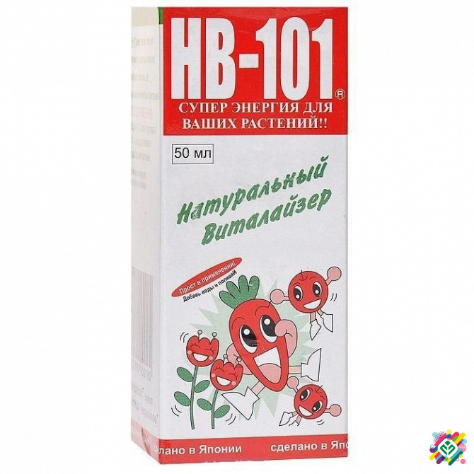 Рідина, отримана з суміші екстрактів високоенергетичних рослинних компонентів японського кедра, кипарису, сосни та подорожника. Переваги: НВ-101 - повністю натуральний екстракт, отриманий з тієї частини рослин, яка є найважливішою для їх правильного розвитку. Живить рослини, покращуючи їх ріст, цвіт...