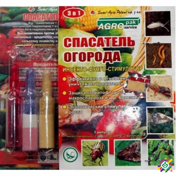 Препарат «Спасатель томатів» є високоефективним у боротьбі з усіма видами хвороб та більшістю комах-шкідників, які завдають серйозної шкоди сільському господарству. Препарат «Спасатель томатів» містить 3 ампули: - інсектоакарицид; - регулятор росту; - фунгіцид. Властивості препарату «Спасатель тома...