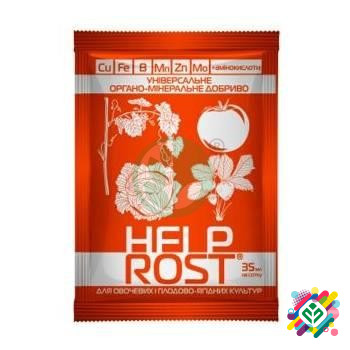 **Препарат для плодово-ягідних культур "ХЕЛПРОСТ®"** **Склад, мг/л:** - Амінокислоти (більше 16 видів) - 16000 - Полісахариди - 1500 - Вітаміни групи В - 50 - Макро- та мікроелементи, хелатовані продуктами метаболізму мікроорганізмів: P2O5 - 9750, K2O - 7600, Zn - 270, Cu - 650, B - 300, SO3 - 450,...
