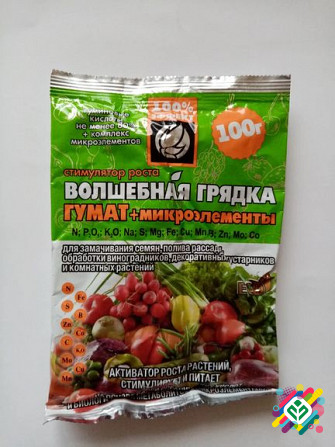 **Опис:** Гумат +7 - це добриво для підживлення будь-якої рослинності на підвіконні, в саду або на городі. Діюча речовина: натрієві та калійні солі гумінових кислот. Гумат +7 виробляється на високоокислених коричневих вугіллях, містить 80-88% солей гумінових кислот (гумати) та 7 основних мікроелемен...