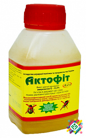 Препарат "Актофіт" є високоефективним засобом проти шкідників сільськогосподарських та декоративних культур, що має м'які санітарно-гігієнічні та екологічні характеристики. Діюча речовина: аверсектин-С 0,2%. Форма випуску: концентрат емульсії. Спектр дії: колорадський жук, листовертка, павутинний к...
