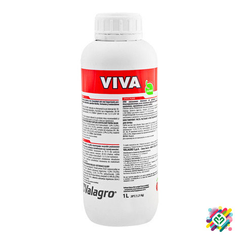 Стимулятор Вива (Viva) 1л Valagro - спеціальний стимулятор, який підвищує репродуктивні функції та біологічну активність рослини, дія якого поширюється також на мікробіологічну активність ґрунту. Рослини, які отримують поживний комплекс Viva, мають більш розвинену кореневу систему, краще сформовані ...
