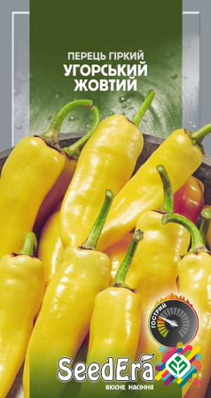 Мінімальна кількість для покупки: 10 штук Сорт перцю, який відноситься до найбільш холодостійких. **Характеристики:** - **Вид:** гіркий - **Терміни дозрівання:** ранній - **Колір плоду:** жовтий - **Форма плоду:** циліндрична - **Маса плоду:** до 100 г - **Товщина стінок:** тонка Цей ранньоспіли...