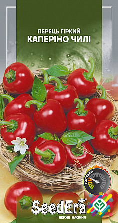 Мінімальне замовлення — 10 штук Сорт перцю "Каперіно" є гірким видом паприки червоного кольору, плоди якого нагадують томати черрі. Рослина має компактну низьку форму. Плоди мають круглу форму, на етапі технічної спелості вони мають зелений колір, а на біологічному — червоний. Шкірка плоду є щільно...