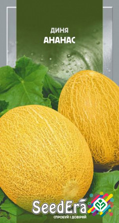 Мінімальна сума замовлення на насіння складає 300 грн, а мінімальна кількість - 10 штук. ### Технічні характеристики: - **Смак:** аналогічний ананасу - **Вага плоду:** 2-2,5 кг - **Терміни дозрівання:** середні - **Колір плоду:** помаранчевий - **Форма плоду:** продовгувата ### Опис сорту: Це сер...