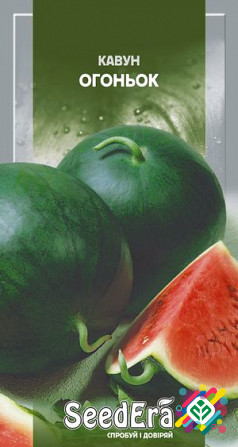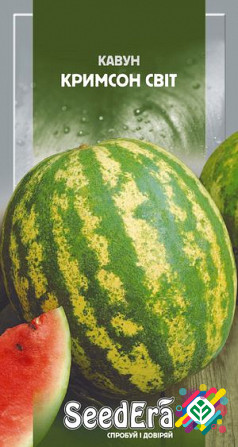 Мінімальна сума замовлення на насіння складає 300 гривень, при цьому мінімальна кількість насінин – 10 штук. Сорт належить до раннього типу з великими плодами, вагою від 3,5 до 5 кг. Форма плоду округла, з темно-зеленою шкіркою і світло-зеленими смугами. М'якоть насичено-червона, дуже соковита та ...