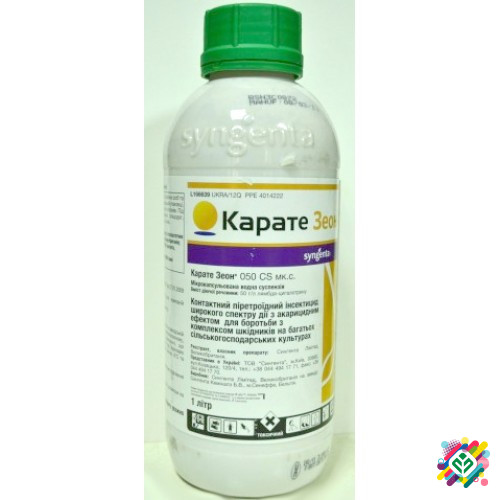 Карате Зеон інсектицид Карате Зеон - це піретроїдний інсектицид, який захищає сільськогосподарські культури від широкого спектру шкідників. Він підходить також для дезінсекції зерносховищ та прилеглих до них територій. Карате Зеон - інсектицид, який представляє унікальну препаративну форму, складен...