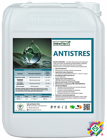 NewPlant Antistres IQ* є препаратом, спеціально розробленим для боротьби з стресом у рослин, викликаним неблагоприятними погодними умовами, такими як спека та приморозки, або впливом пестицидів. Цей продукт містить наступні компоненти на літр розчину: - Амінокислоти - 400 г - P2O5 - 50 г - Гумат - ...