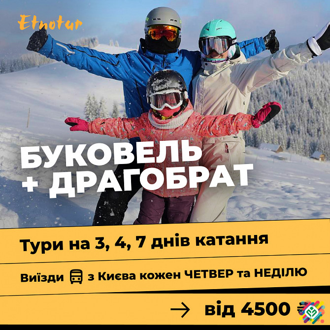 **Автобусні тури на гірські курорти Буковель і Драгобрат з Києва з супроводом від Etnotur** Etnotur пропонує вам можливість відправитися на захоплюючі автобусні тури до двох популярних гірських курортів України - Буковель та Драгобрат. Наша висококваліфікована команда забезпечить вам комфортний тра...