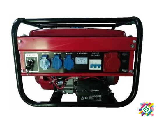 **Технічні характеристики бензинового генератора:** - **Тип:** бензиновий - **Запуск:** ручний - **Число фаз:** 1 - **Генератор:** - Номінальна потужність: 2300 Вт - Повна потужність: 2800 ВА - Сила струму: 10 А - **Двигун і паливо:** - Об'єм двигуна: 196 см³ - Потужність двигуна: 6....