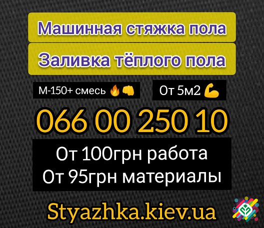Машинна стяжка підлоги є ефективним і надійним методом покриття підлоги, який пропонується за ціною від 110 грн за квадратний метр. Цей продукт має безліч переваг, які роблять його вигідним вибором для будь-якого приміщення. Технічні характеристики машинної стяжки включають використання високоякісн...