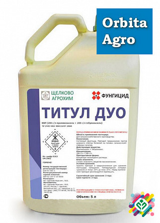 Шановні покупці! У зв'язку зі змінами курсу долара ціни на препарати та посівний матеріал (зарубіжної селекції) перераховуються за курсом на день покупки. Дякуємо за розуміння. **Фунгіцид Титул Дуо** Фунгіцид Титул Дуо - системний фунгіцид, призначений для боротьби з широким спектром хвороб на по...